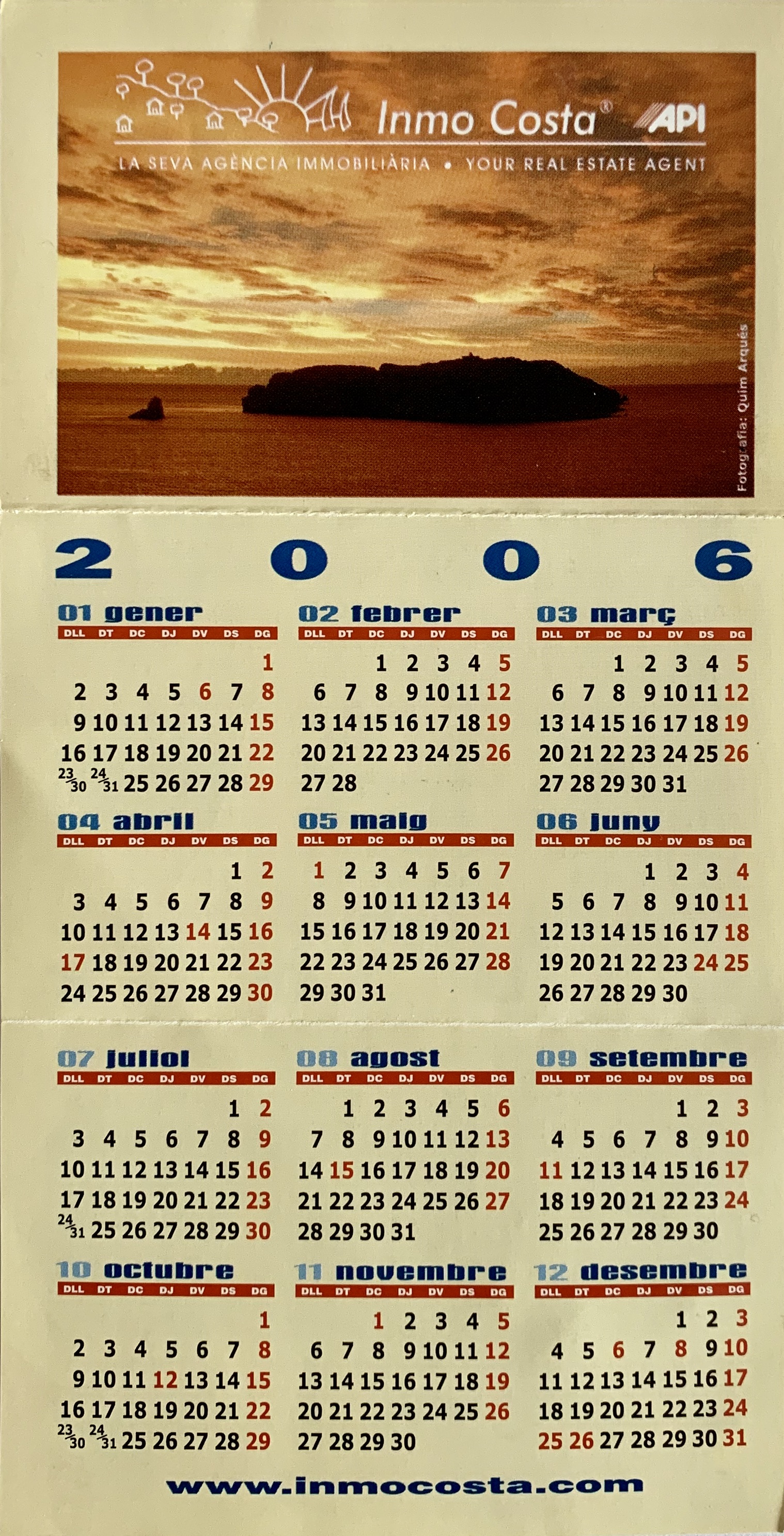 Primer calendari Inmocosta API L'Estartit-L'Escala tríptic de butxaca 2005-2006