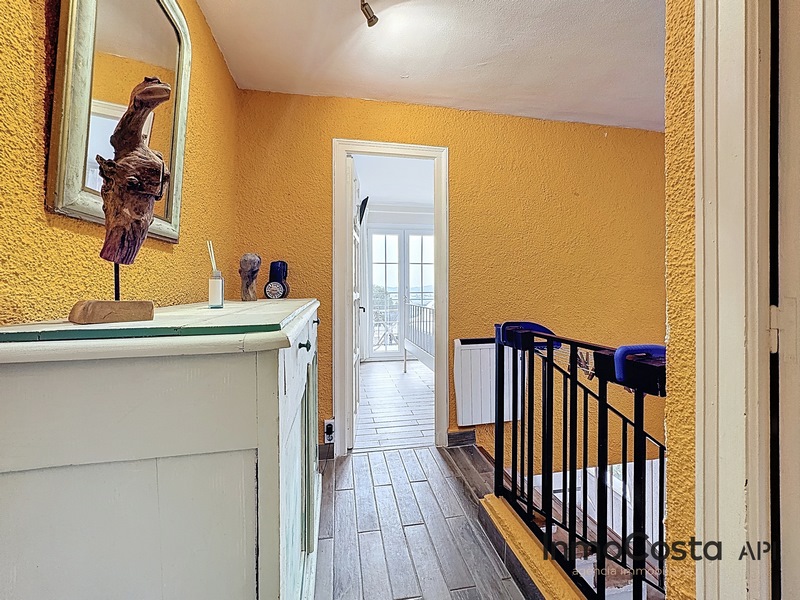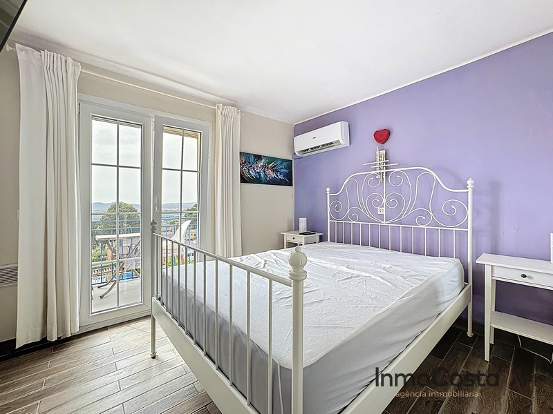 En la planta superior hay un dormitorio con armarios empotrados, terraza y vistas al mar.