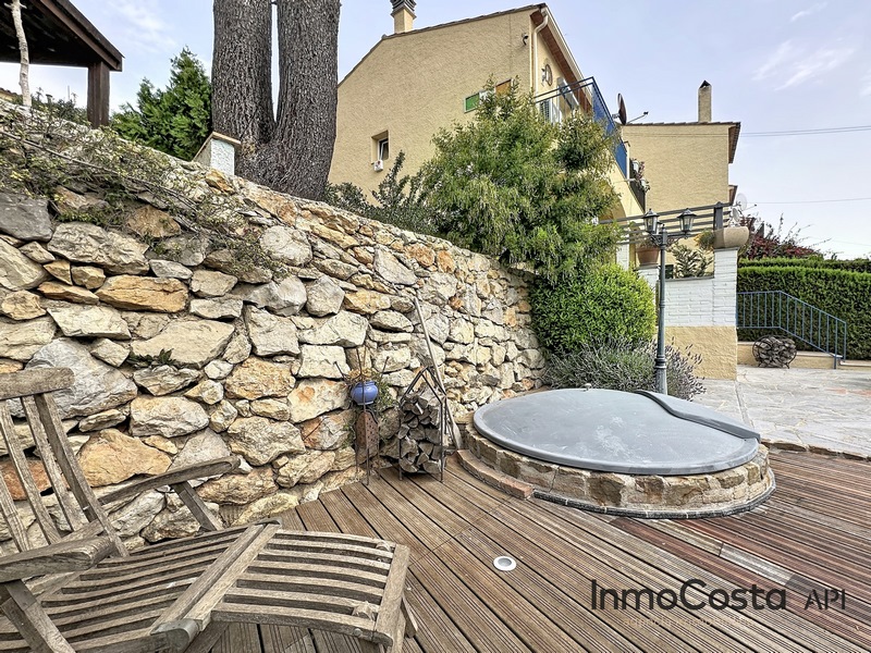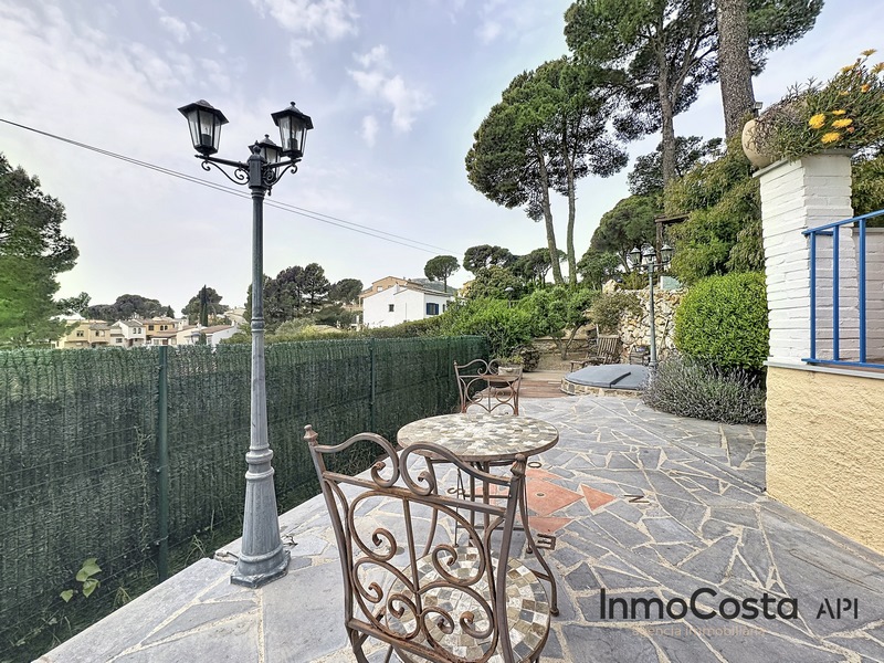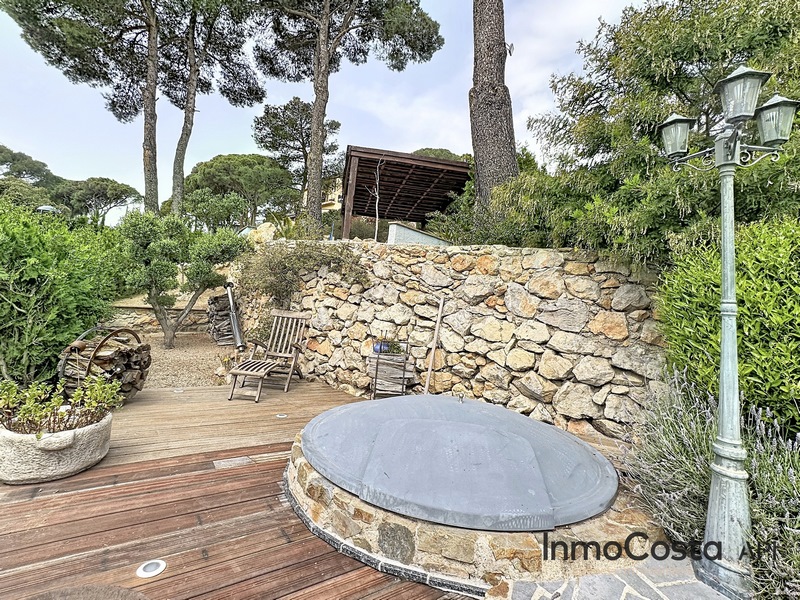 La casa se compone de planta baja con una cocina totalmente reformada y un acceso muy cómodo al salón. Desde el salón se aprecia una chimenea encastrada y una zona muy confortable con salida directa a la terraza. Esta terraza da acceso a un amplio jardín que rodea la casa. En la parcela encontramos un jacuzzi que se ilumina por la noche y diferentes espacios para crear una terraza de verano con vistas al mar.